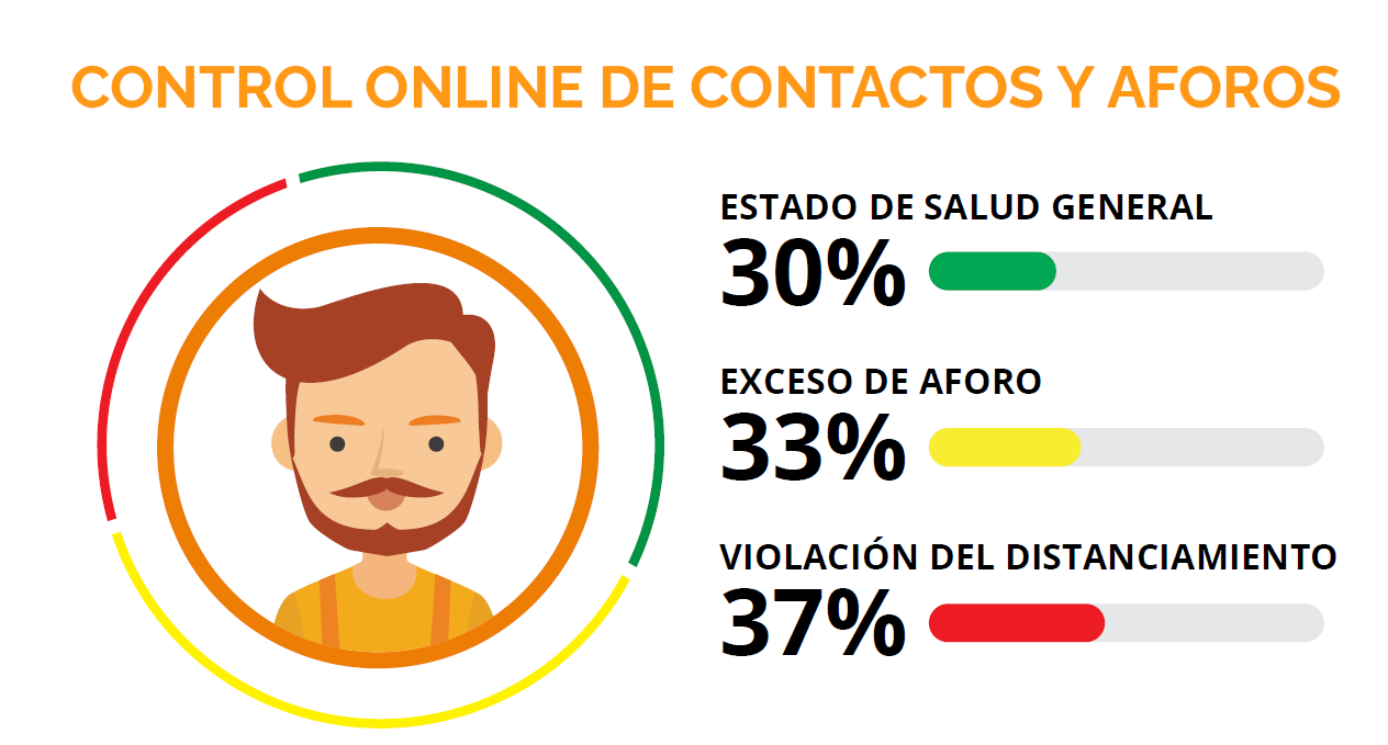 Controla los contactos y aforos del colaborador generando un factor de salud social para medir riesgos de contagios